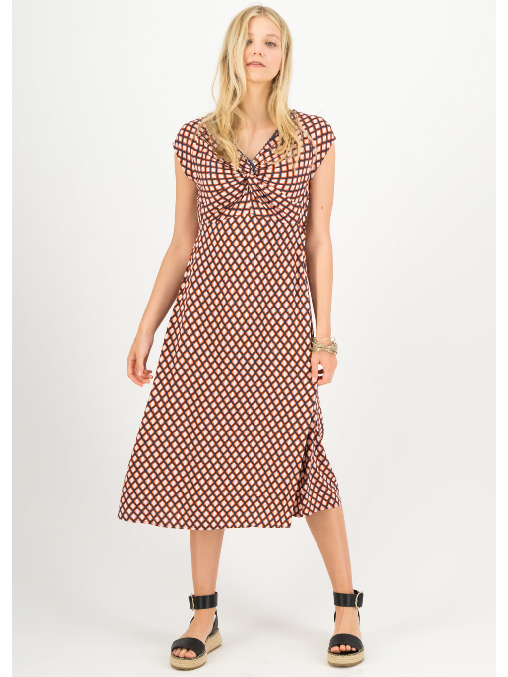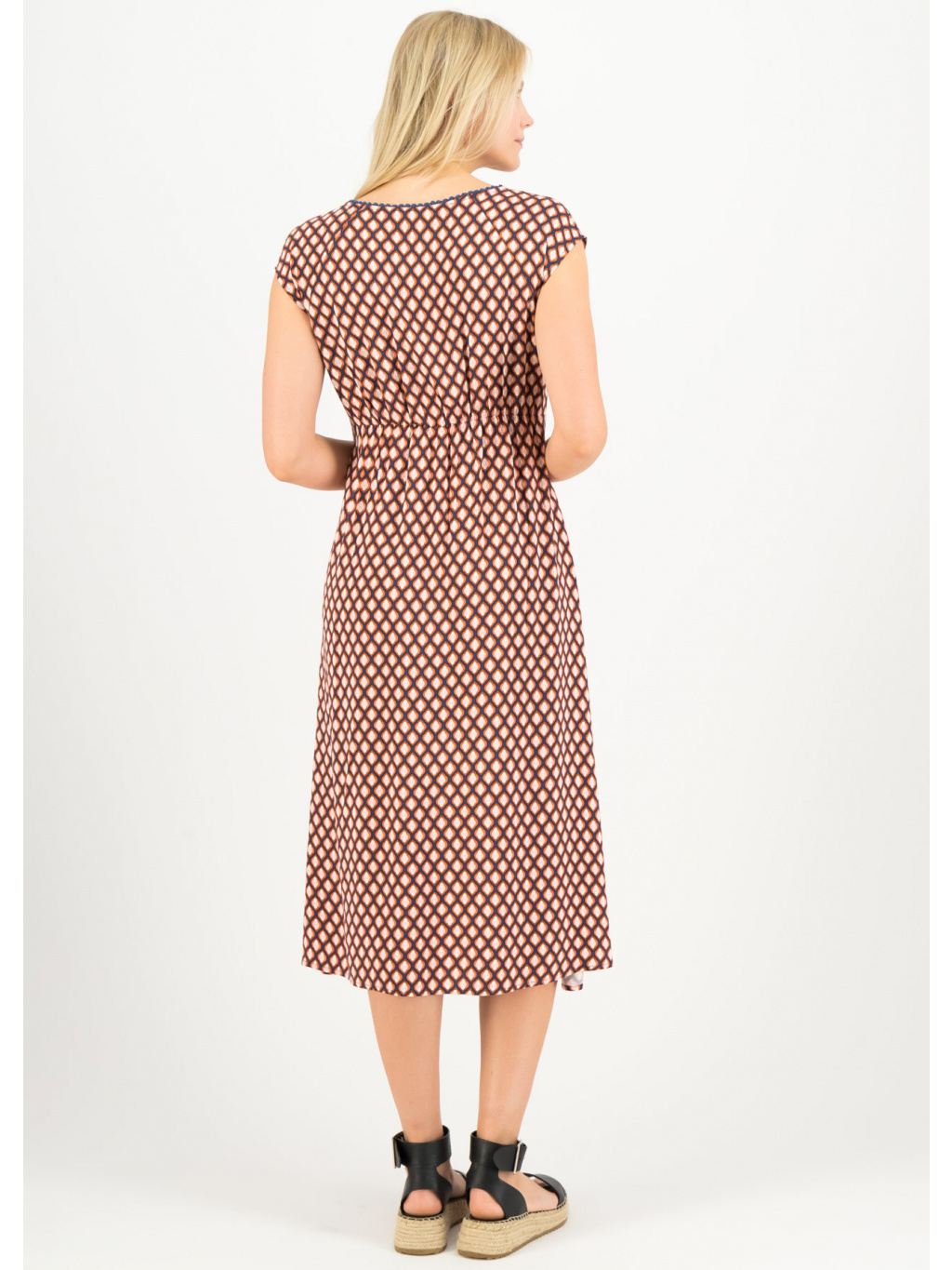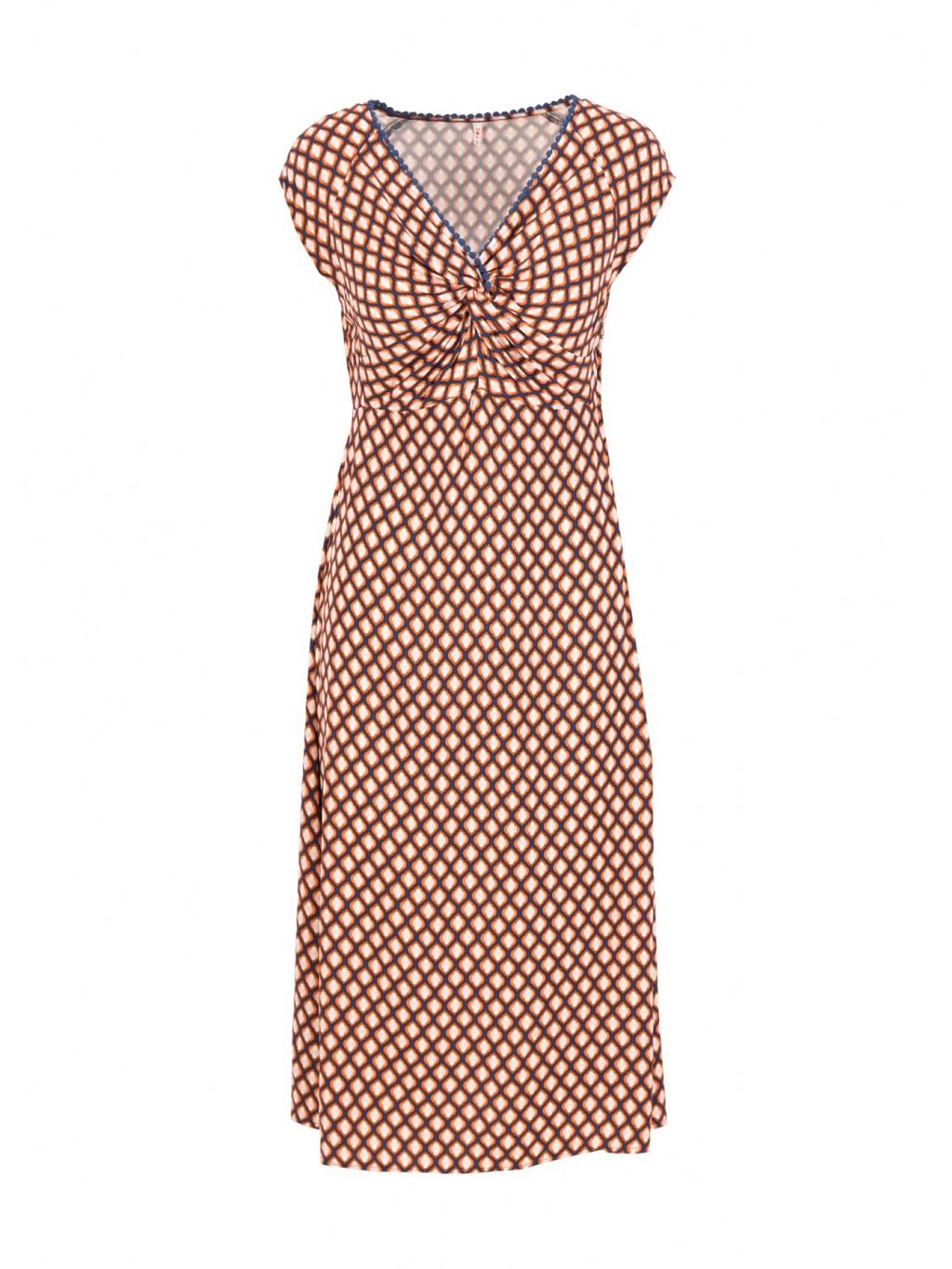 Pohodlné šaty z materiálu LENZING ™ ECOVERO ™ v lehké viskózní kvalitě. Rafinovaný, ale každodenní výstřih do V je zdoben krásným vlnovým pásem. Okouzlující dekolt doplňují krátké raglánové rukávy a uvolněný střih s decentně rozšířenou sukní. Podpažní šev je opatřen pružnou gumičkou; díky své volnosti pohybu a pohodlí si tento vysněný oděv ulehčí cestu do vašeho šatníku ..