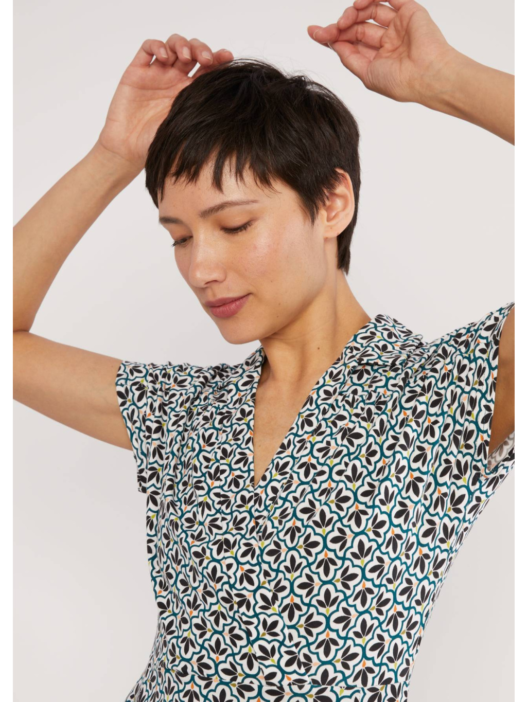 - výstřih do V se zavinovacím efektem