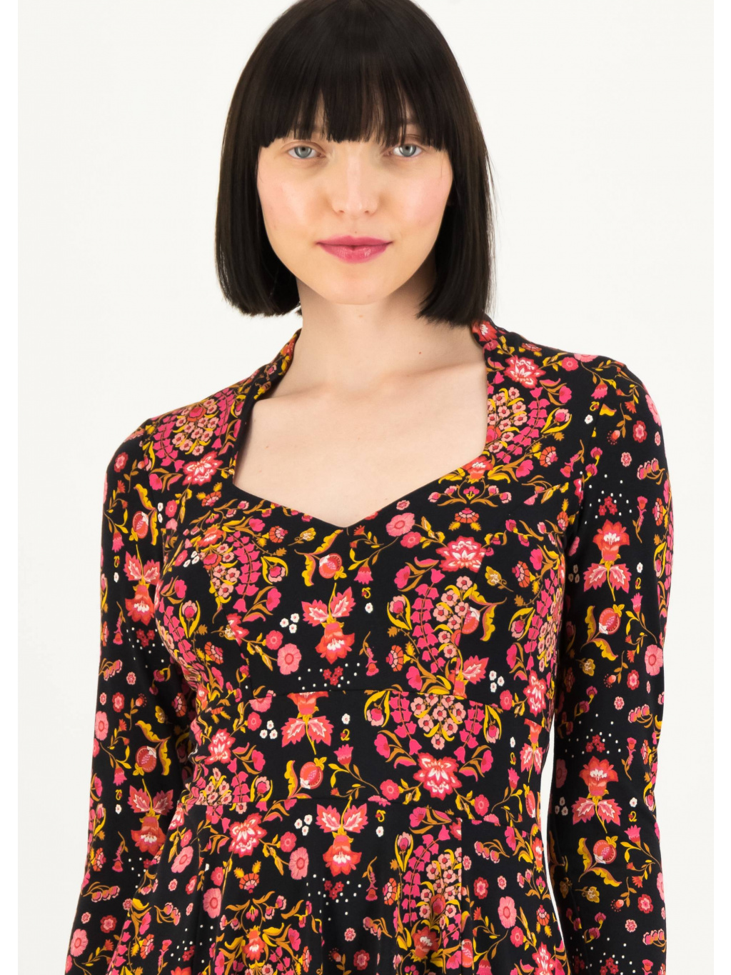 Dámské pohodlné midi šaty vyrobené z příjemného žerzeje z certifikované bio bavlny a elastanu. Díky poutavé kombinaci jednoho z našich nejoblíbenějších tvarů šatů s jedním z nejhezčích výstřihů v kolekci Blutsgeschwister jsou tyto šaty s certifikací GOTS naprostou nutností!