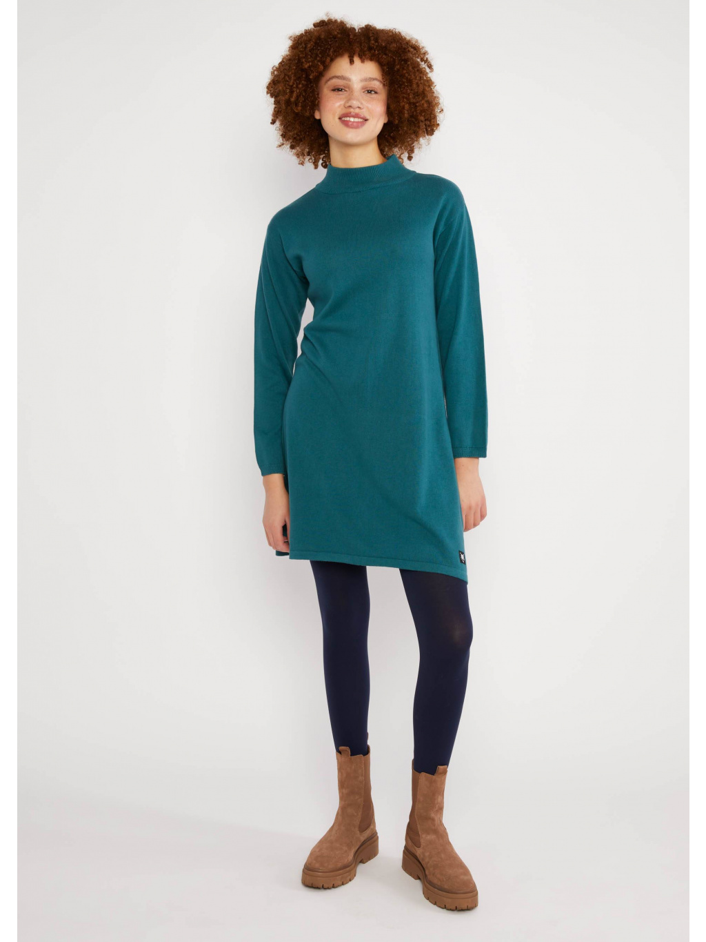 Pulovrové šaty vyrobené ze směsi hebké bio bavlny a Tencelu Lyocell. Ležérní dlouhý svetr je skutečnou zárukou pohodlí, má skvělý volný střih malý stojáček. Šaty jsou vhodné pro každodenní nošení. Můžete skvěle kombinovat s našimi barevnými legíny.